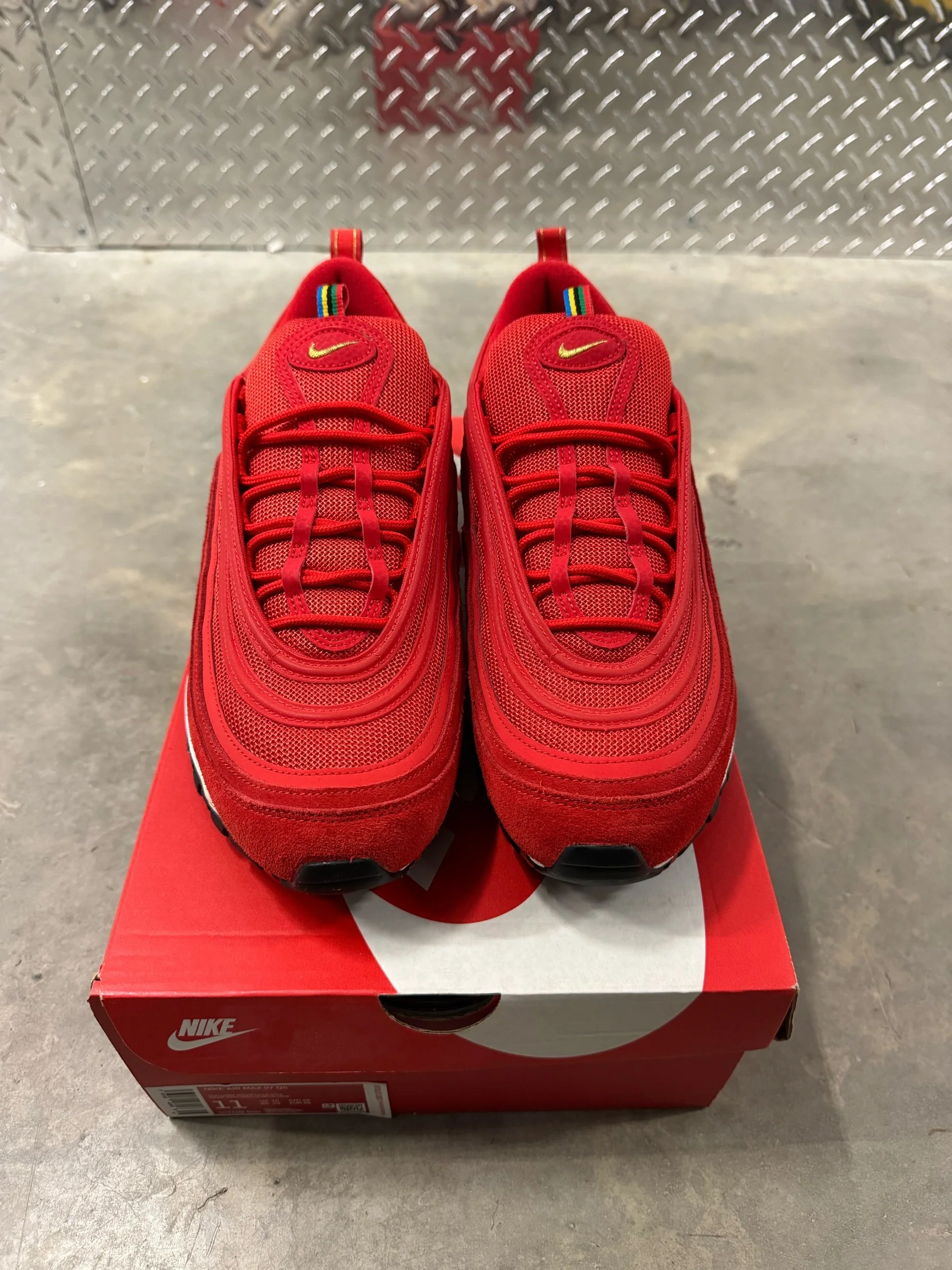 Image 1 of 5 Image 2 of 5 Image 3 of 5 Image 4 of 5 Image 5 of 5 Nike Air Max 97 QS Olympic Rings Red Size 11 $79.99 Size 11Clean, very light wear on soles and uppers Original Box included100% Authentic Add To Cart Added! Size 11Clean, very light wear on soles and uppers Original Box included100% Authentic